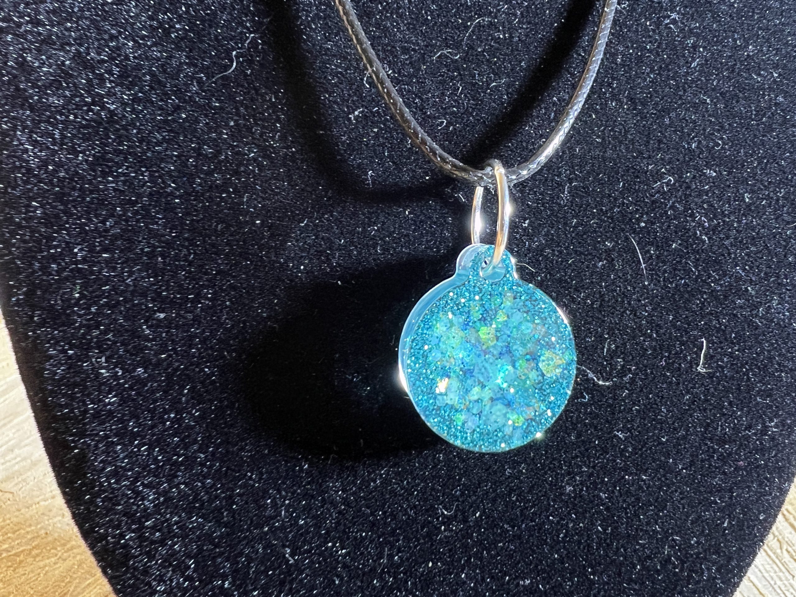 Kis kerek kék nyaklánc csillámokkal