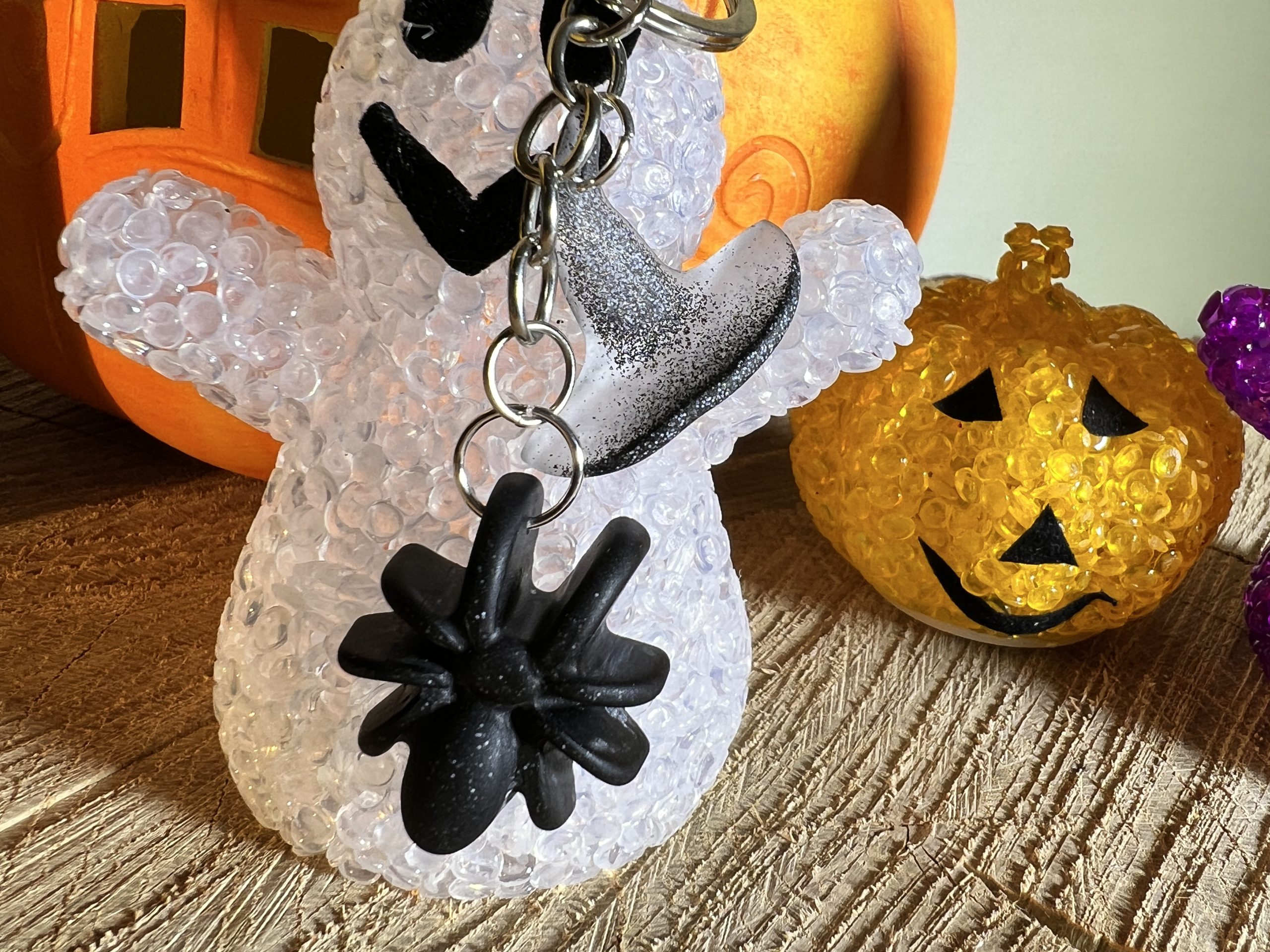 Halloween-i kulcstartó: pók és boszorkánykalappal, fekete színben